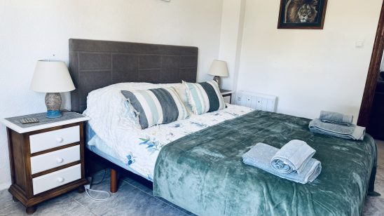 The blue bedroom is a double bedroom which has 2 single beds suitable for upto 2 people. The bedroom has an en suite bathroom with a comfortable shower. This air-conditioned triple room also features a desk, garden views and lots of wardrobe space. Tara Casa is a shared country house with 6 bedrooms. The guests can also use the guest kitchen, dining area, lounge, poolside bar and the gardens.