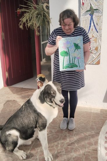 The mosaicing was wonderful. Lots of inspiring works everywhere and a lovely spacious studio to work in. Dan’s advice and guidance was invaluable and the piece I made is the first one I’ve proudly sent pictures of to my friends and family! I think it was having the space to really put my heart and soul into it, which would not have been possible without the relaxed vibe of Tara Casa and the kindness and encouragement of Dan and Viv, they were a pleasure to spend time with. I feel like my creative block has shifted and I am starting to plan future projects.