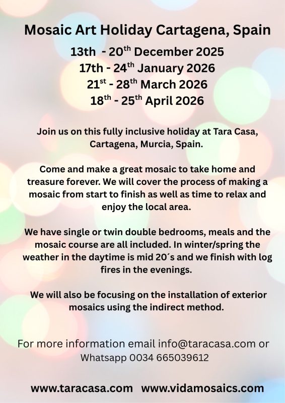 Mosaic Art courses & holidays offer a calming creative retreat from the stresses of the outside world. A beautiful location and a chance to create a unique piece of art to take home. Also the skills to be able to start a satisfying new hobby that will stay with you long after your mosaic holiday is over.